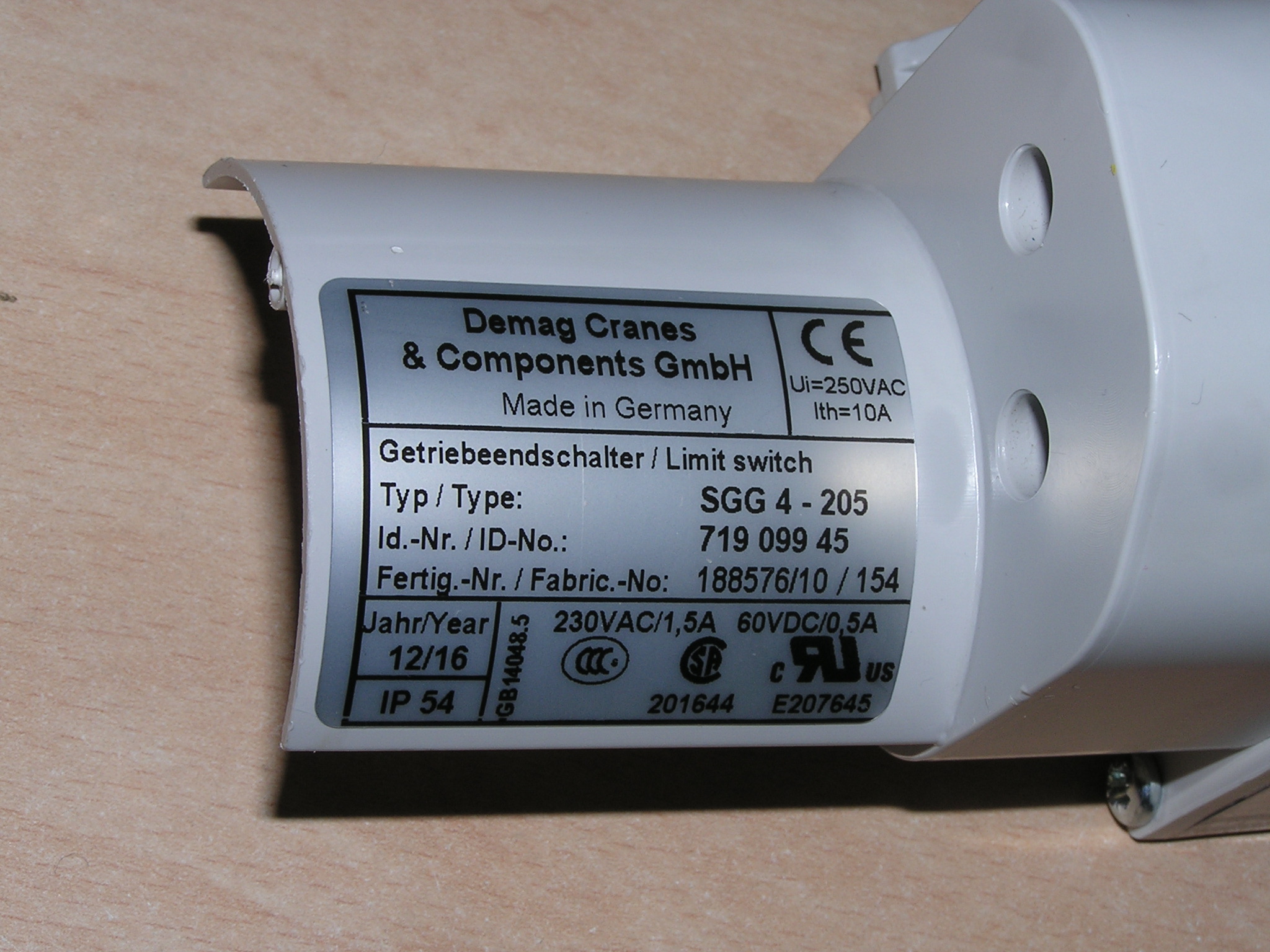 | Type | Geared limit switch SGG 4 – 205 |