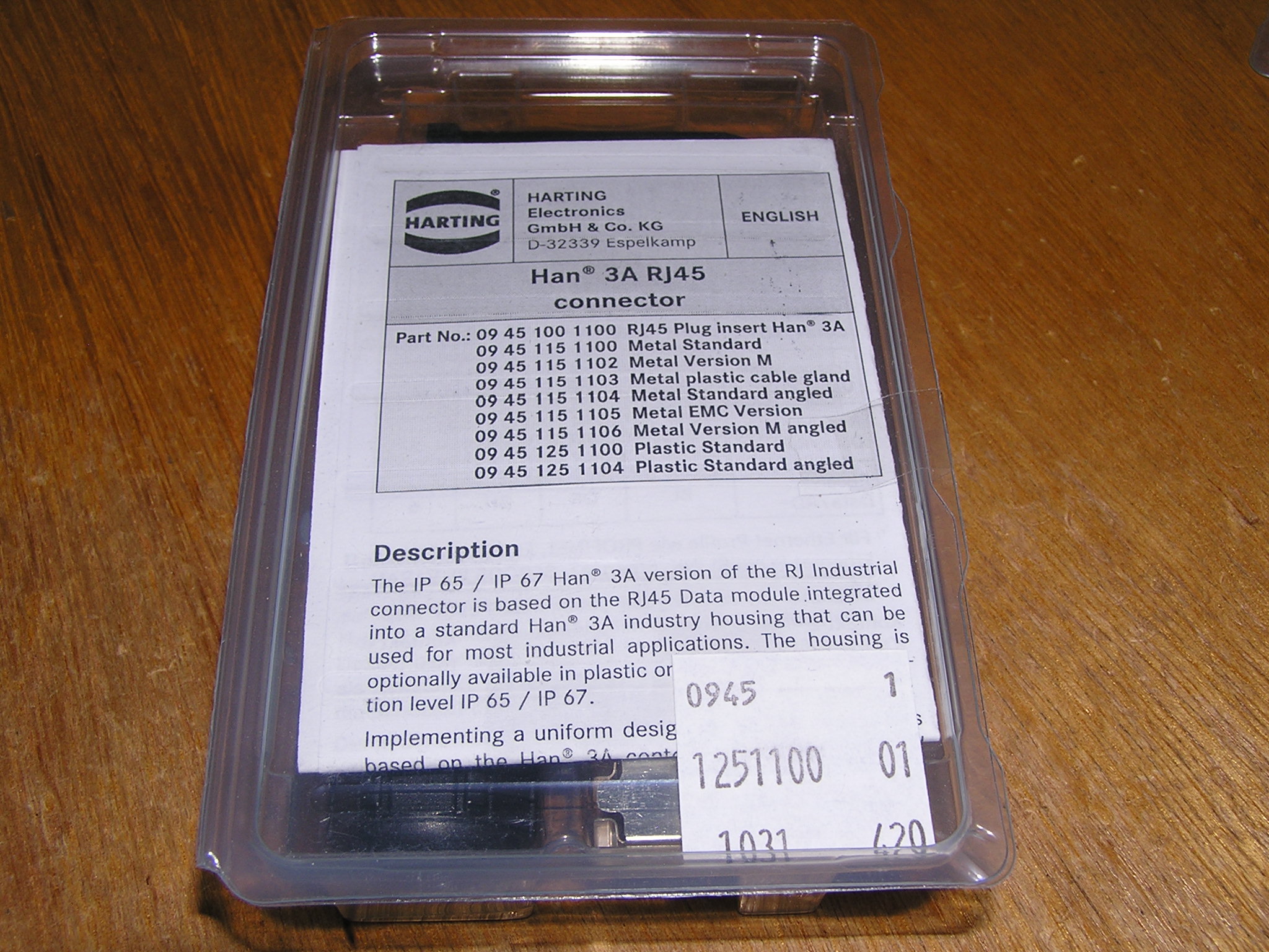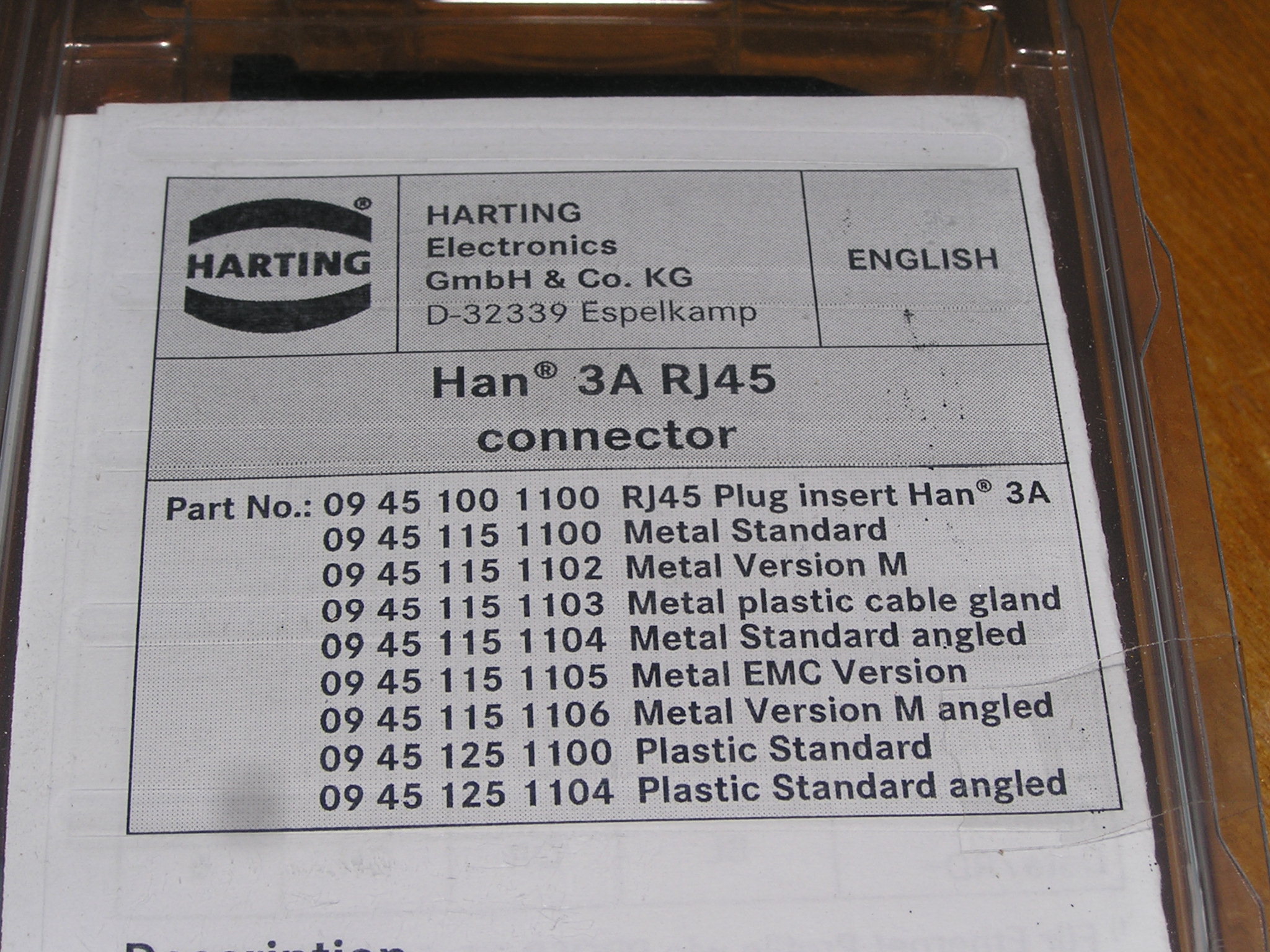 Lot of 7x Harting Han3A RJ45 Cat5 plug 4p IDC plastic