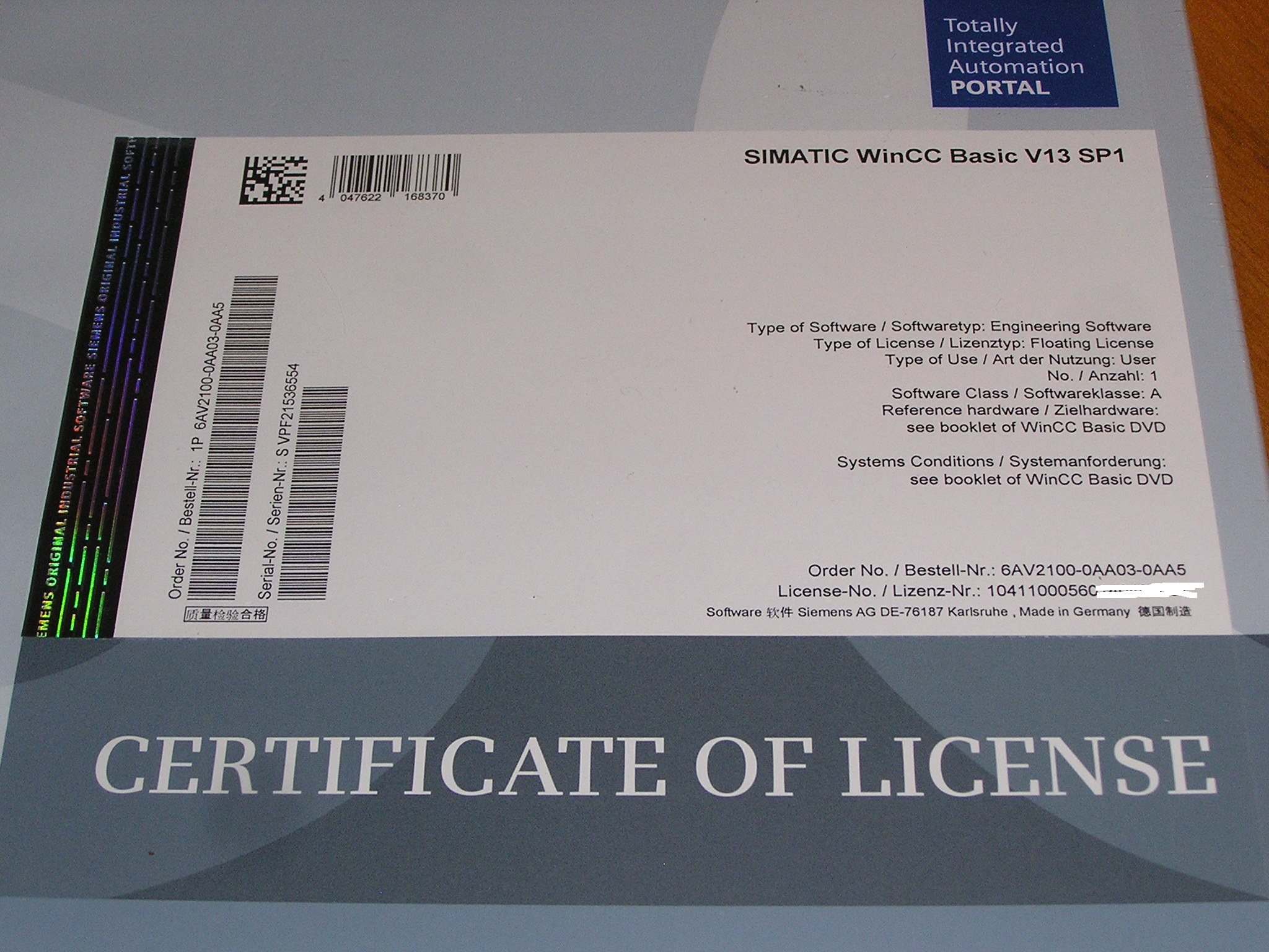 | Type | Simatic WinCC Basic V13 SP1 |