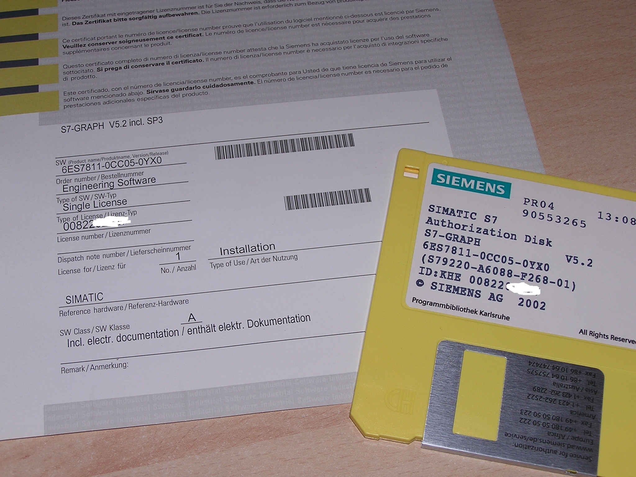 Used in open original box, license on floppy disk. Manufacturing year 2002